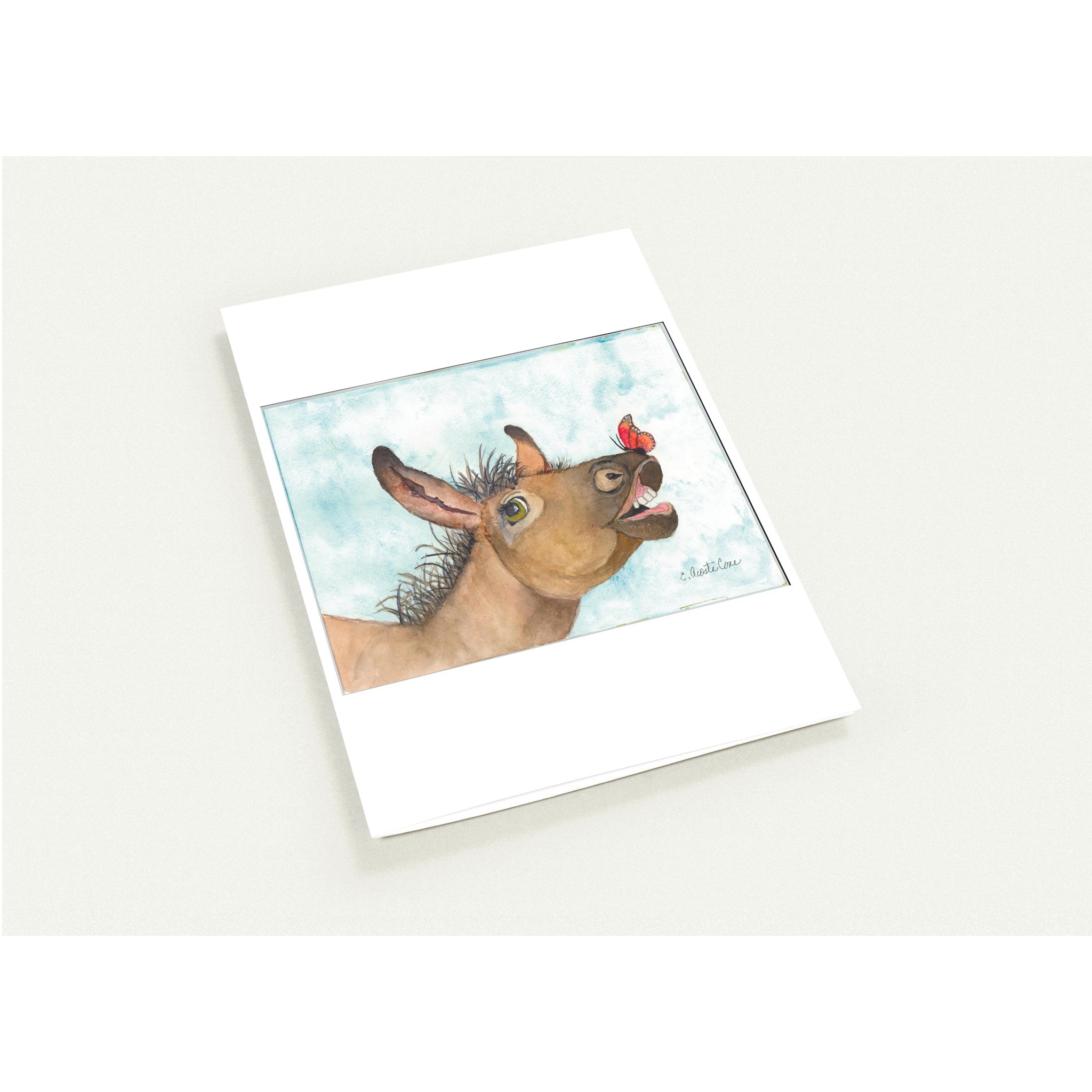 Make every occasion special with our delightful pack of 10 watercolor greeting cards featuring the charming Dennis the Delightful Donkey with a butterfly perched on his nose. This unique design is perfect for sending heartfelt messages to loved ones, whether it’s for birthdays, thank you notes, or simply to brighten someone’s day.