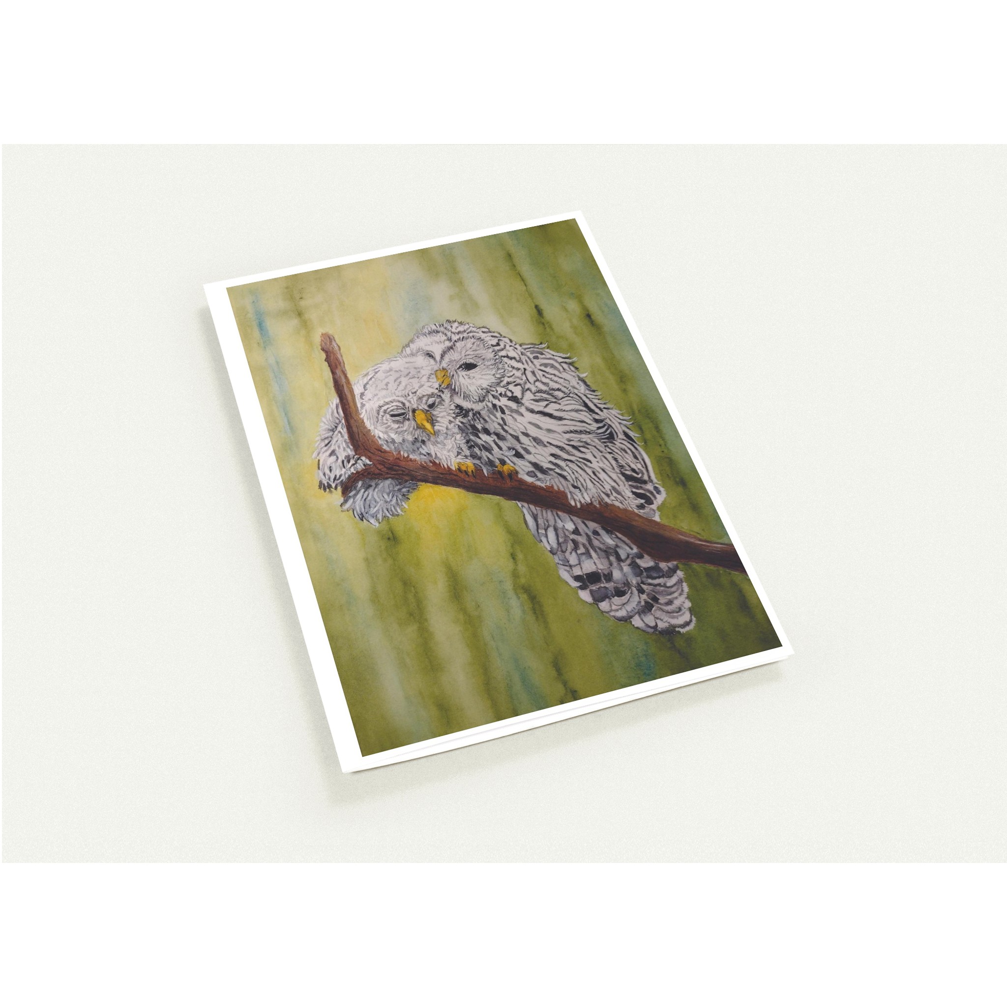 A mother owl perches with her young owlet.