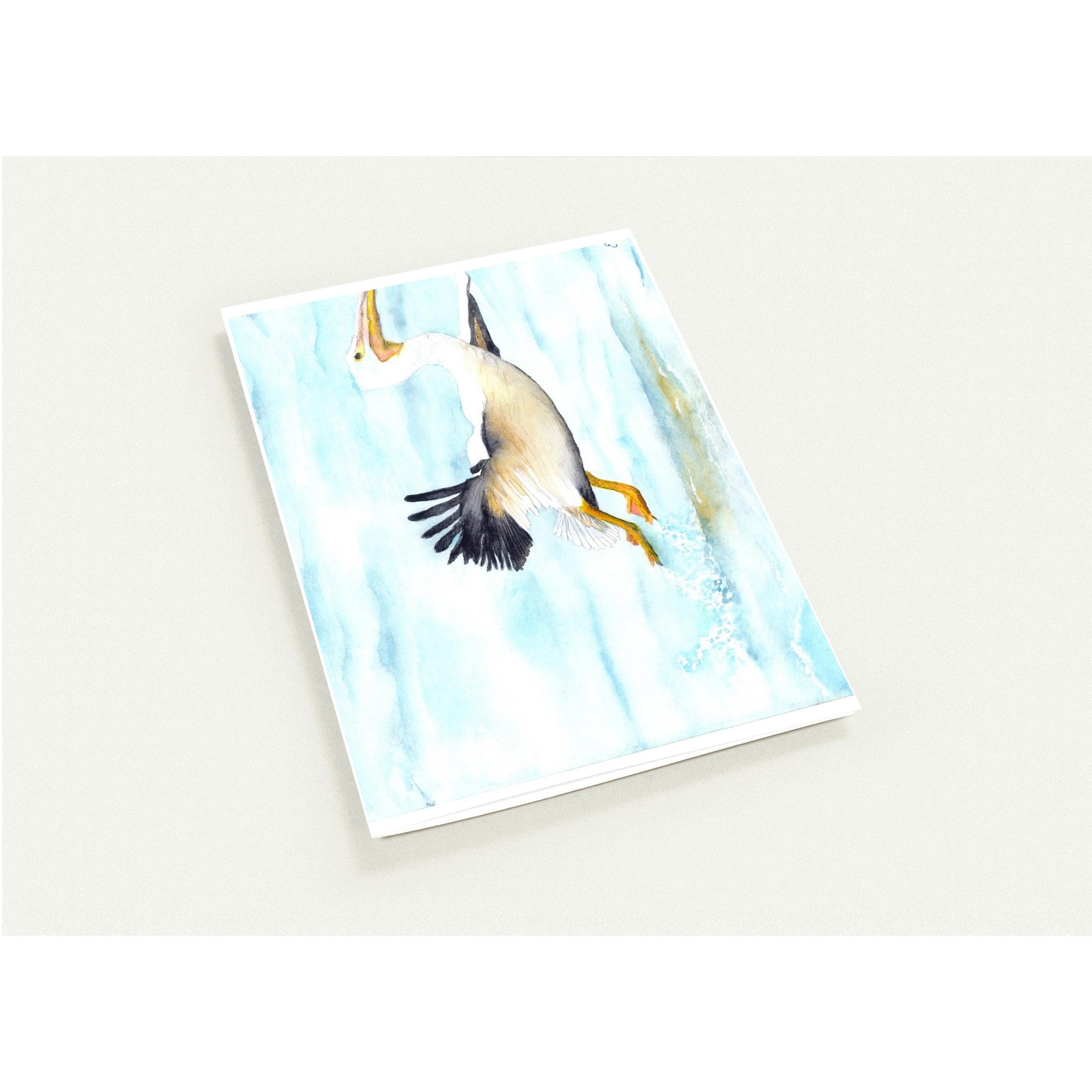 Create a one-of-a-kind sentiment with our stunning pelican watercolor greeting cards, perfect for any occasion. This pack of 10 personalized folded cards offers an elegant design featuring a graceful pelican skimming over the waves, making it a beautiful choice for nature lovers and art enthusiasts alike.