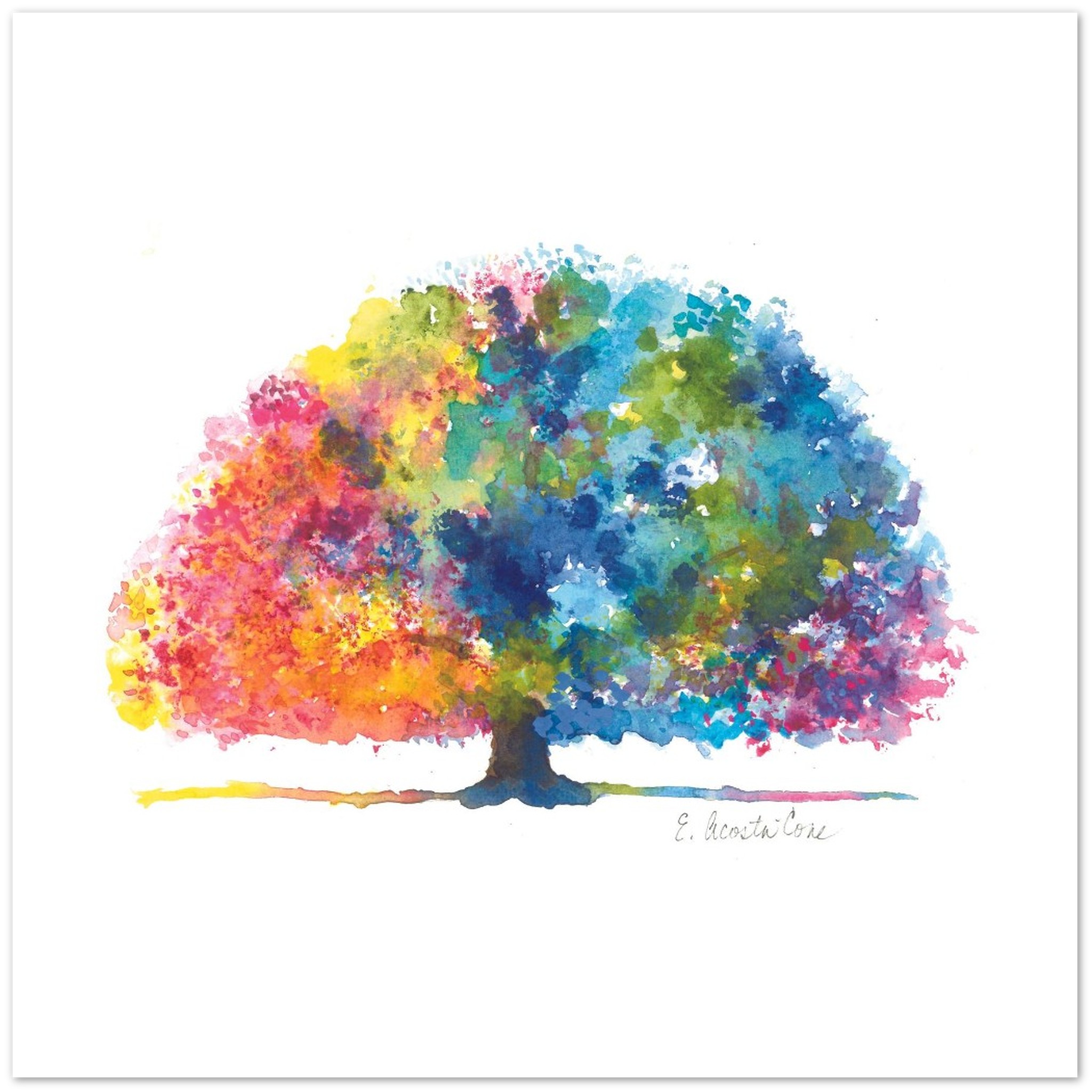 The Tree of Life is an iconic symbol that is likely as old as civilization itself. It denotes the source of life, a force that connects all lives, the connection between the earth and heaven, or the cycle of life and death itself. This rainbow-hued watercolor also symbolizes hope, renewal and new beginnings.